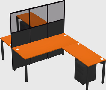 Orange Shared L-shape Office Cubicle Panel System For 2 Persons