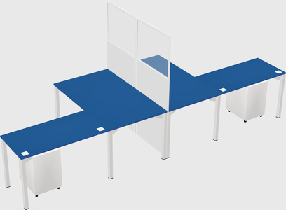 Prism Blue Shared L-shape Office Cubicle Panel System For 2 Persons