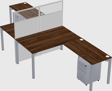 Columbia Walnut Shared L-shape Office Cubicle Panel System For 2 Persons