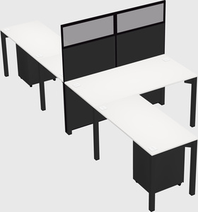 White Shared L-shape Office Cubicle Panel System For 2 Persons