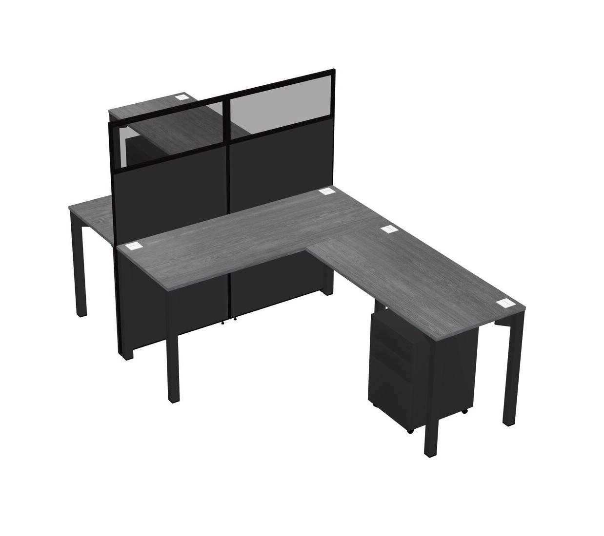 Grey Shared L-shape Office Cubicle Panel System For 2 Persons