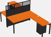 Orange Shared L-shape Office Cubicle Panel System For 2 Persons