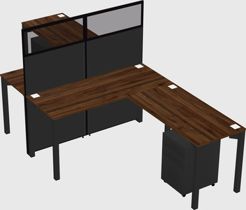 Columbia Walnut Shared L-shape Office Cubicle Panel System For 2 Persons