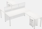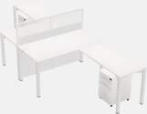 White Shared L-shape Office Cubicle Panel System For 2 Persons