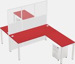 White Shared L-shape Office Cubicle Panel System For 2 Persons