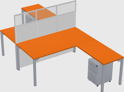 Orange Shared L-shape Office Cubicle Panel System For 2 Persons