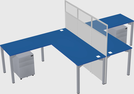 Prism Blue Shared L-shape Office Cubicle Panel System For 2 Persons