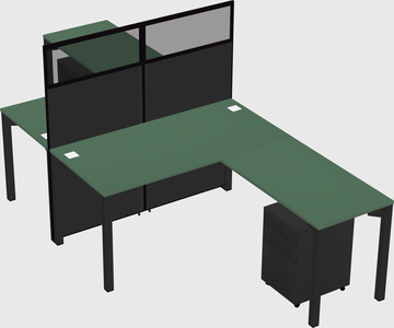 Green Shared L-shape Office Cubicle Panel System For 2 Persons