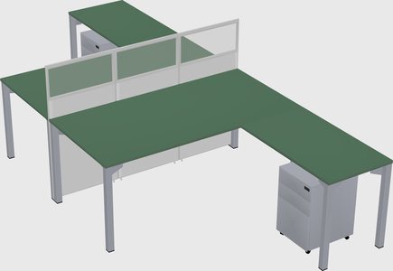 Green Shared L-shape Office Cubicle Panel System For 2 Persons