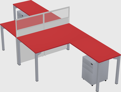 Prism Red Shared L-shape Office Cubicle Panel System For 2 Persons