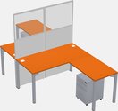 Columbia Walnut Shared L-shape Office Cubicle Panel System For 2 Persons