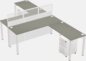 Grey Shadows Shared L-shape Office Cubicle Panel System For 2 Persons