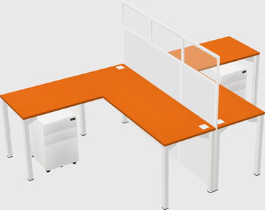 Orange Shared L-shape Office Cubicle Panel System For 2 Persons