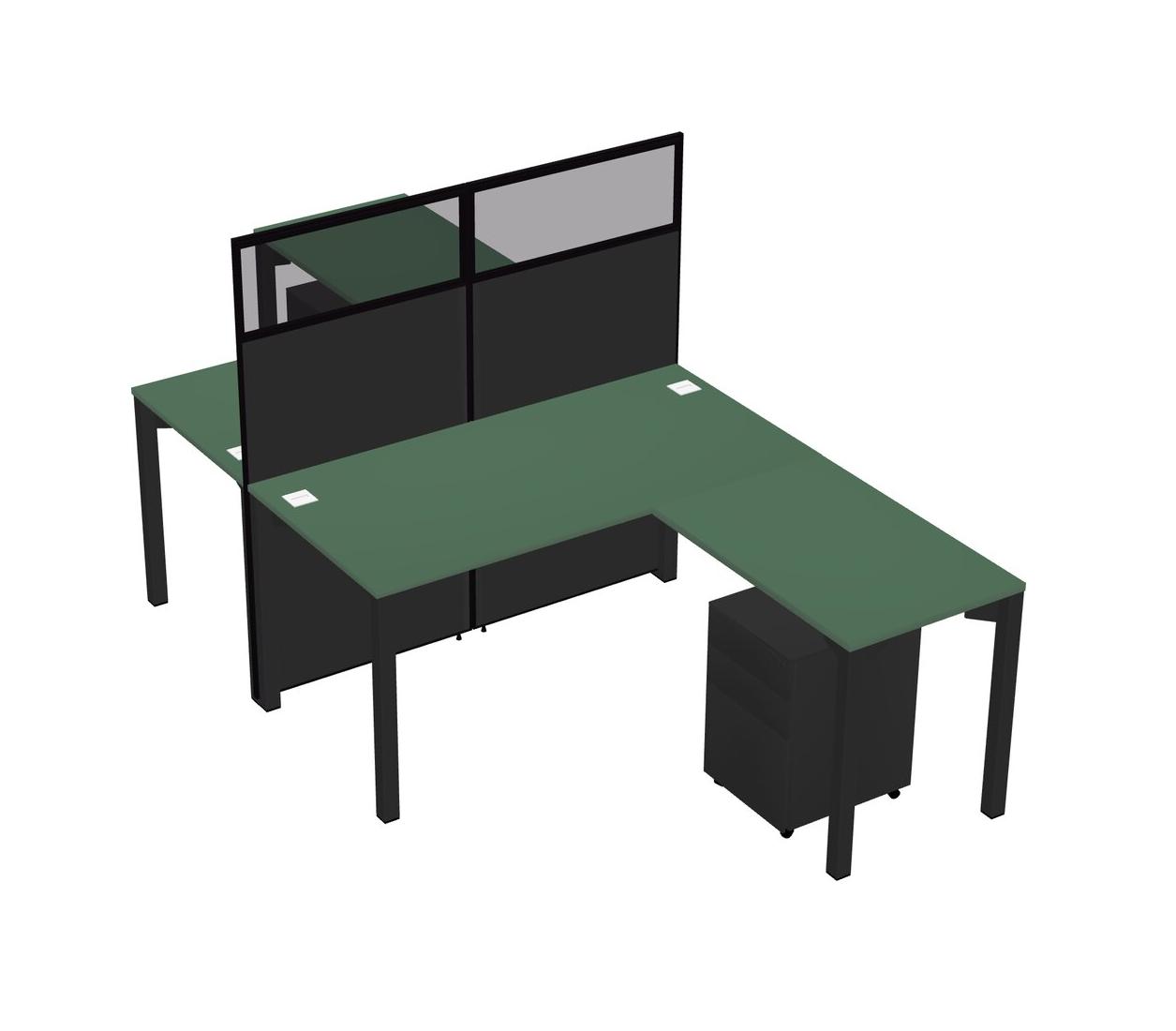 Green Shared L-shape Office Cubicle Panel System For 2 Persons