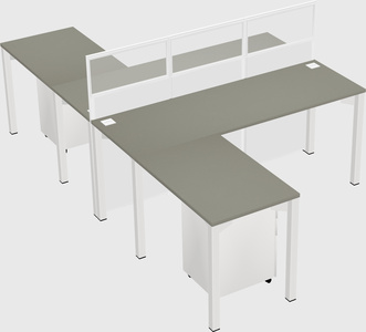 Grey Shadows Shared L-shape Office Cubicle Panel System For 2 Persons
