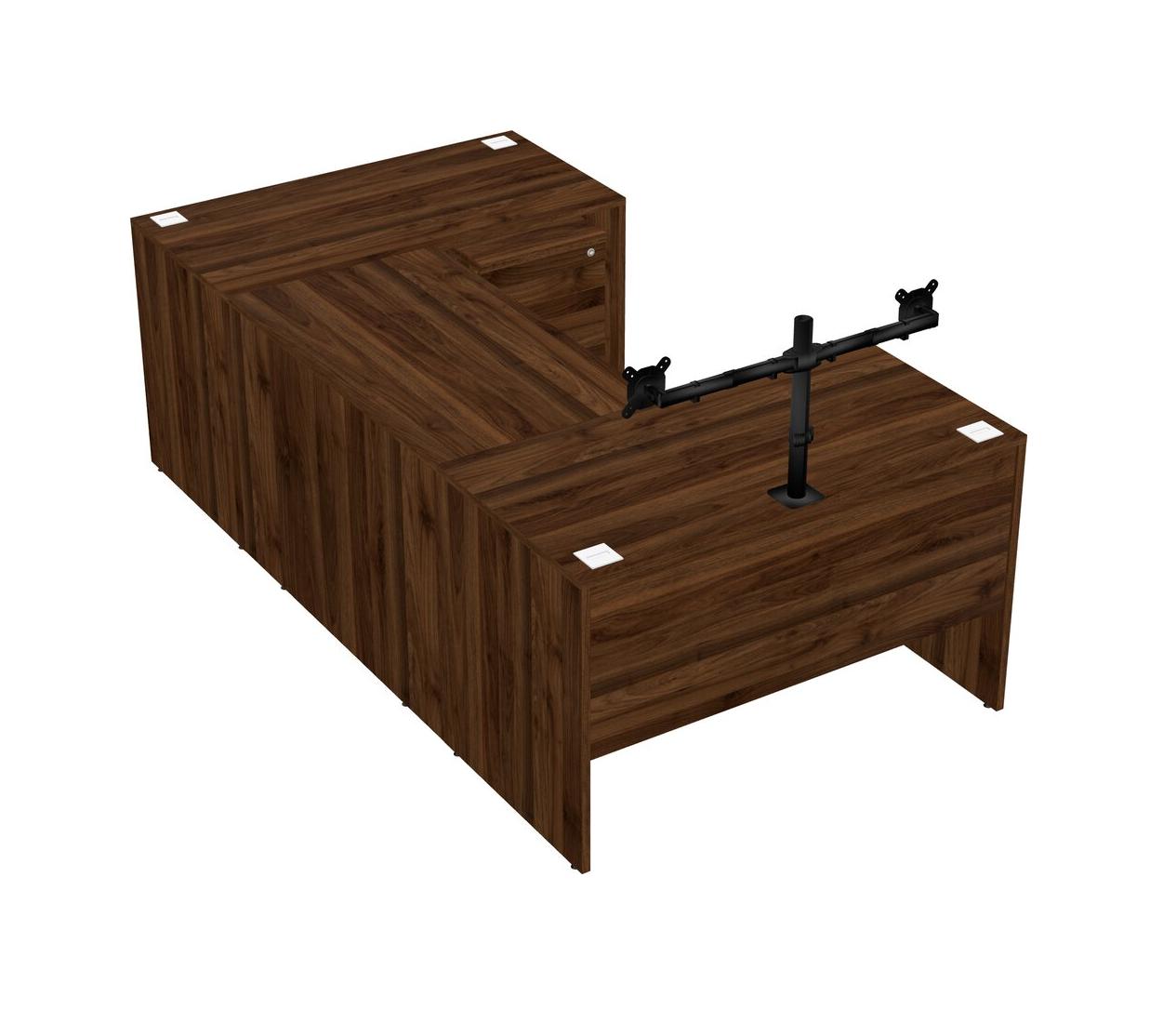 Office U-shaped Desk Credenza Desk + Wooden Mobile Drawers + Monitor Arm (double Arms)