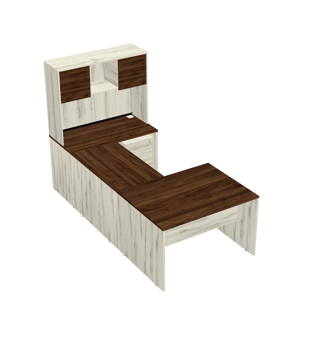 Office U-shaped Desk Credenza Desk + Wooden Mobile Drawers + Hutch