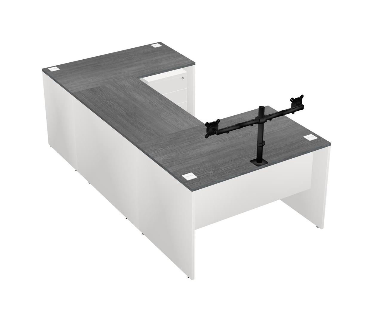 Office U-shaped Desk Credenza Desk + Wooden Mobile Drawers + Monitor Arm (double Arms)