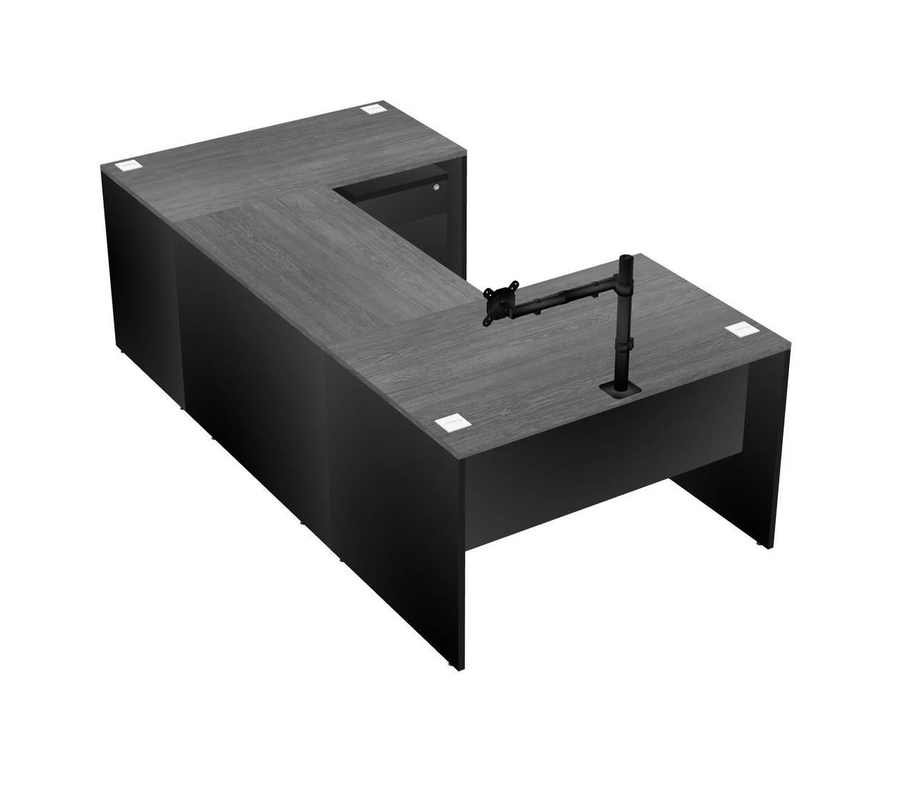Office U-shaped Desk Credenza Desk + Wooden Mobile Drawers + Monitor Arm (single Arm)
