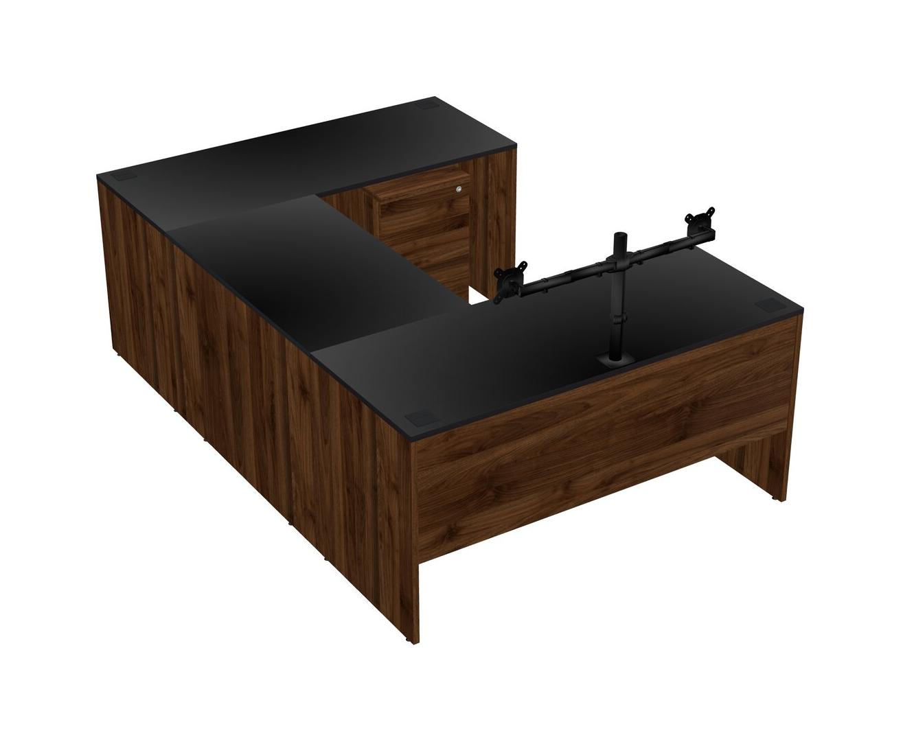 Office U-shaped Desk Credenza Desk + Wooden Mobile Drawers + Monitor Arm (double Arms)