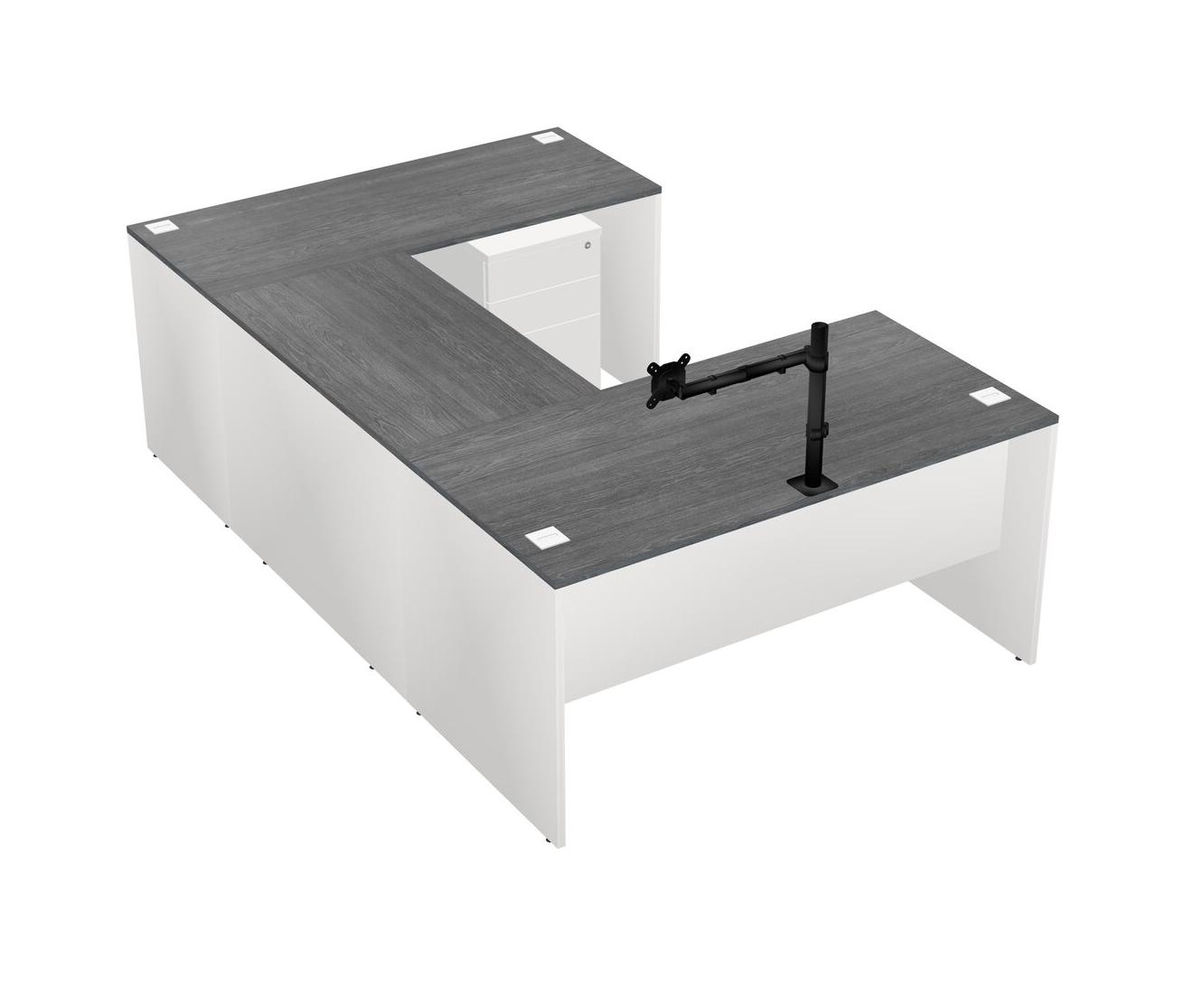 Office U-shaped Desk Credenza Desk + Wooden Mobile Drawers + Monitor Arm (single Arm)