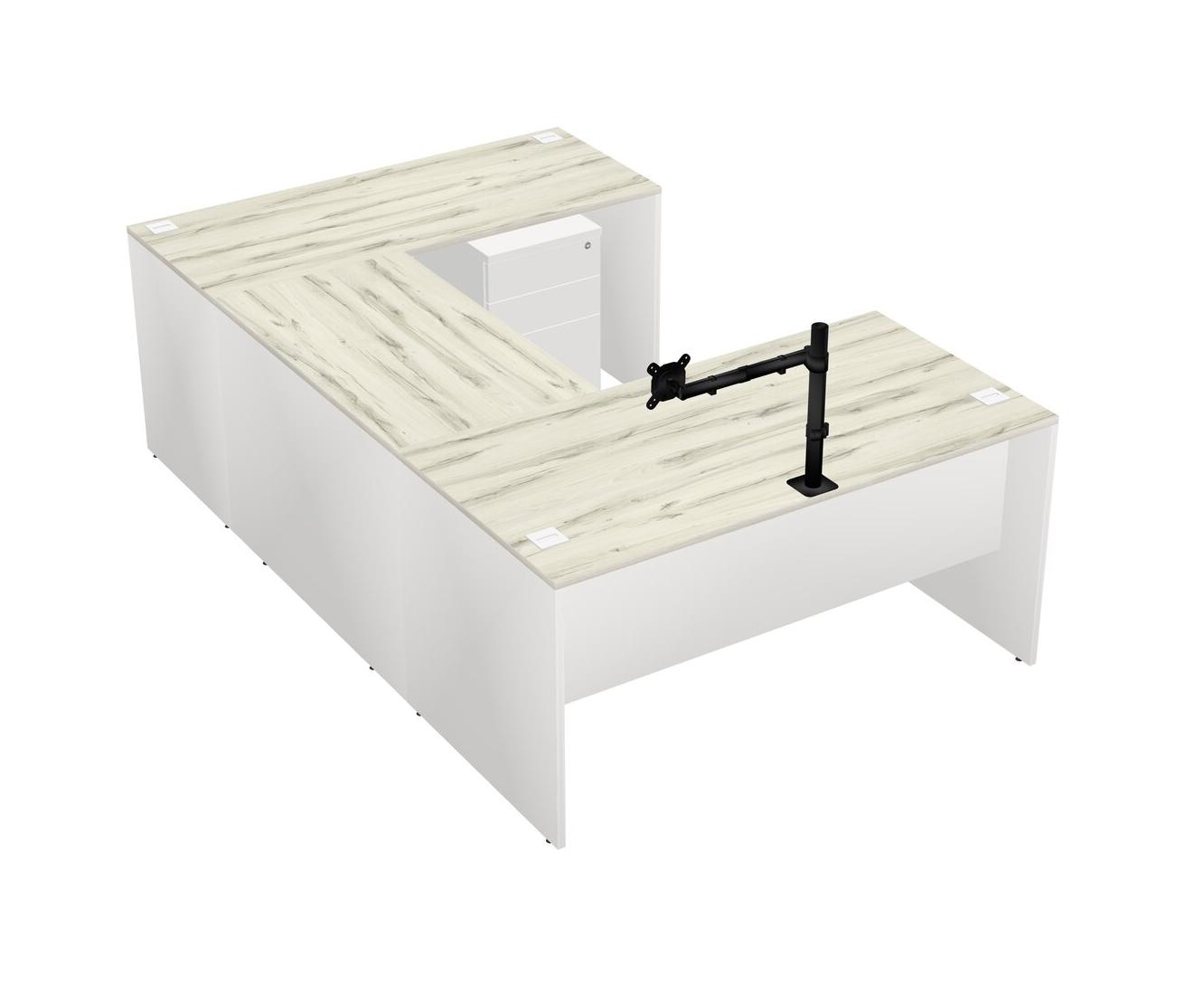 Office U-shaped Desk Credenza Desk + Wooden Mobile Drawers + Monitor Arm (single Arm)