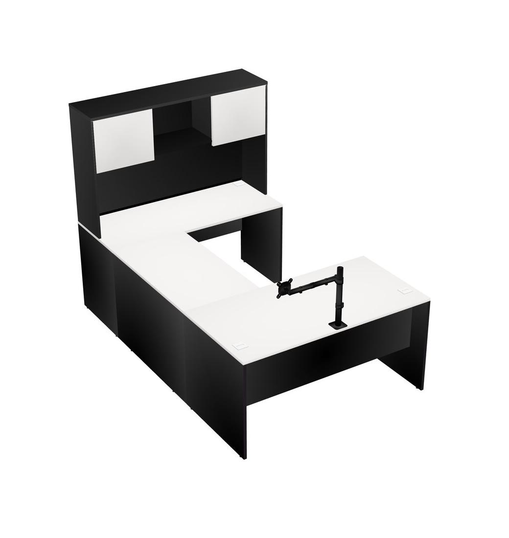 Office U-shaped Desk Credenza Desk + Hutch + Monitor Arm (single Arm)