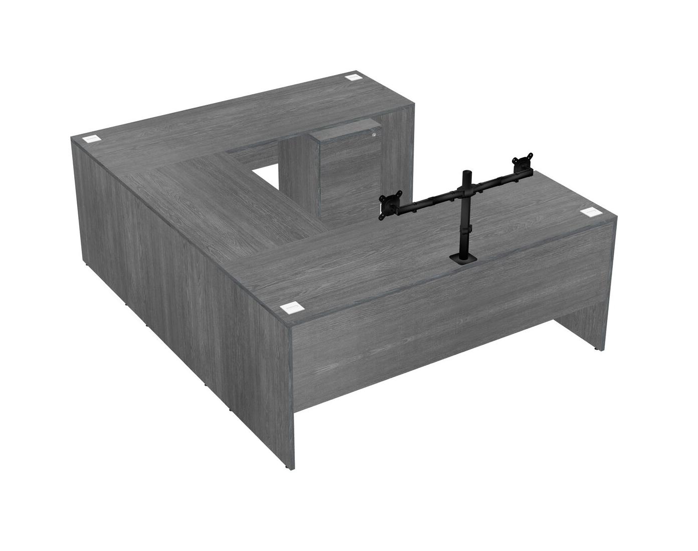 Office U-shaped Desk Credenza Desk + Wooden Mobile Drawers + Monitor Arm (double Arms)