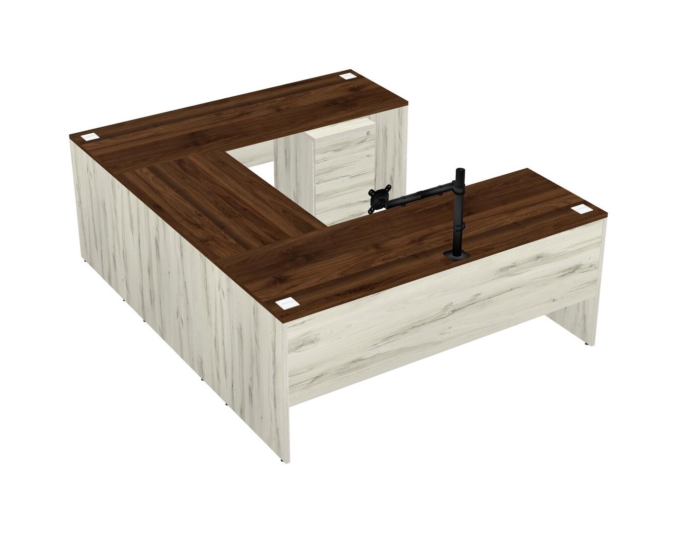 Office U-shaped Desk Credenza Desk + Wooden Mobile Drawers + Monitor Arm (single Arm)