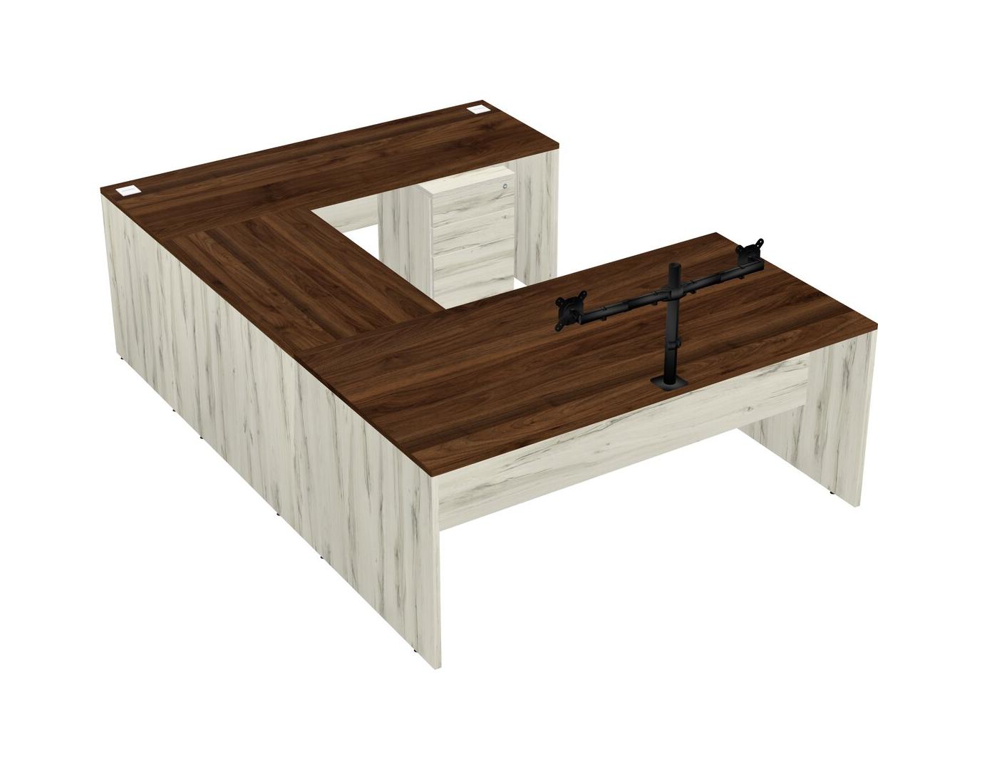 Office U-shaped Desk Credenza Desk + Wooden Mobile Drawers + Monitor Arm (double Arms)