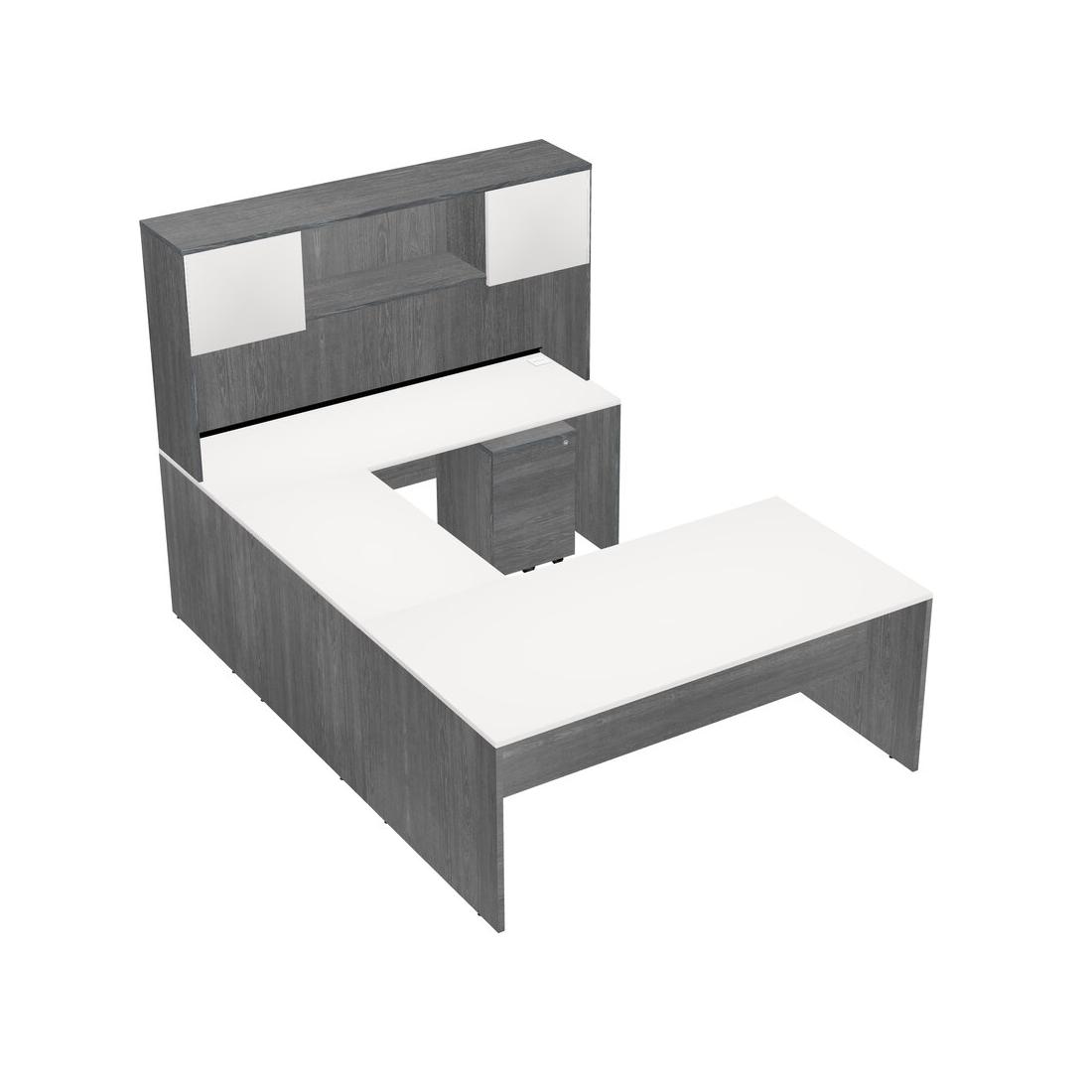 Office U-shaped Desk Credenza Desk + Wooden Mobile Drawers + Hutch