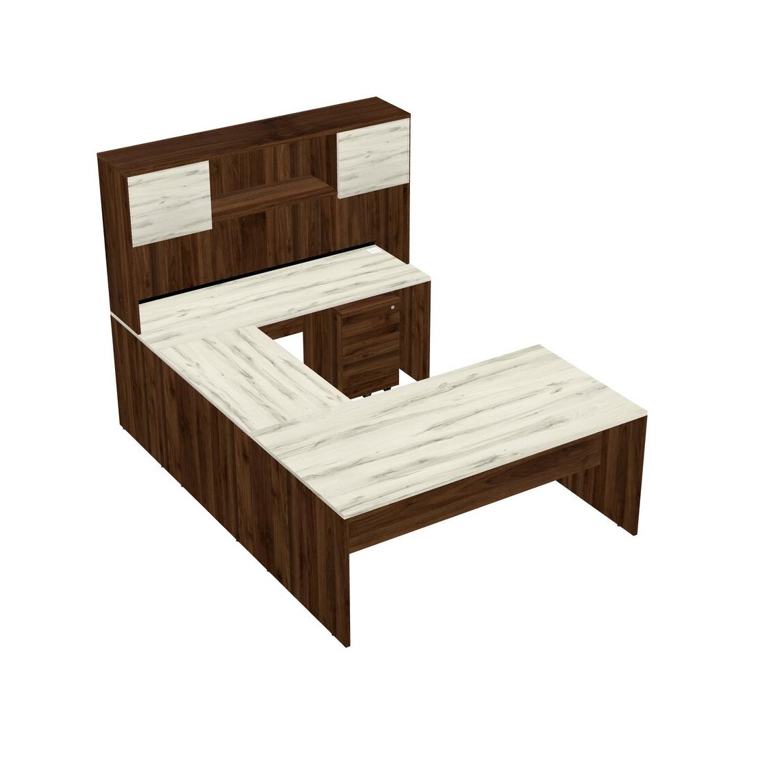 Office U-shaped Desk Credenza Desk + Wooden Mobile Drawers + Hutch