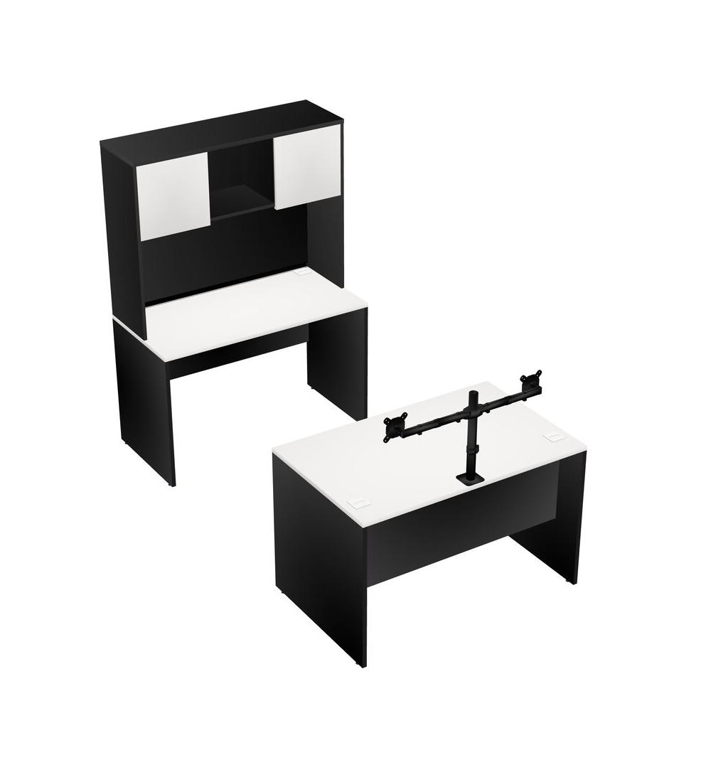 Office Parallel Desk Credenza Desk + Hutch + Monitor Arm (double Arms)