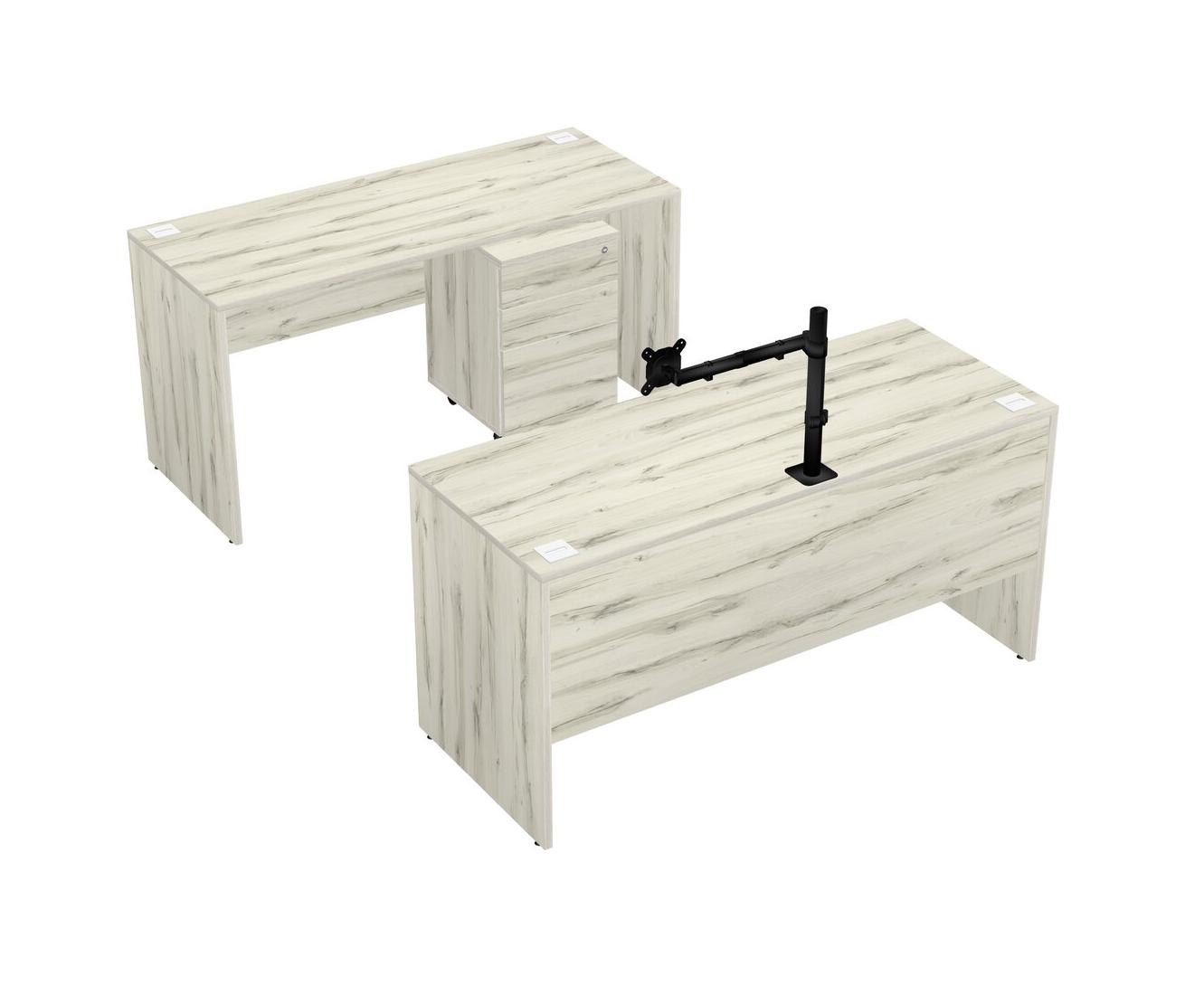 Office Parallel Desk Credenza Desk + Wooden Mobile Drawers + Monitor Arm (single Arm)