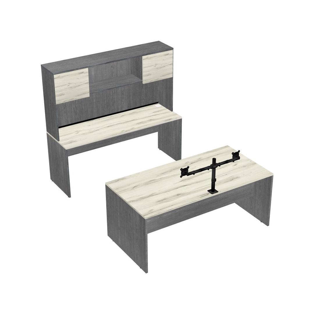 Office Parallel Desk Credenza Desk + Hutch + Monitor Arm (double Arms)