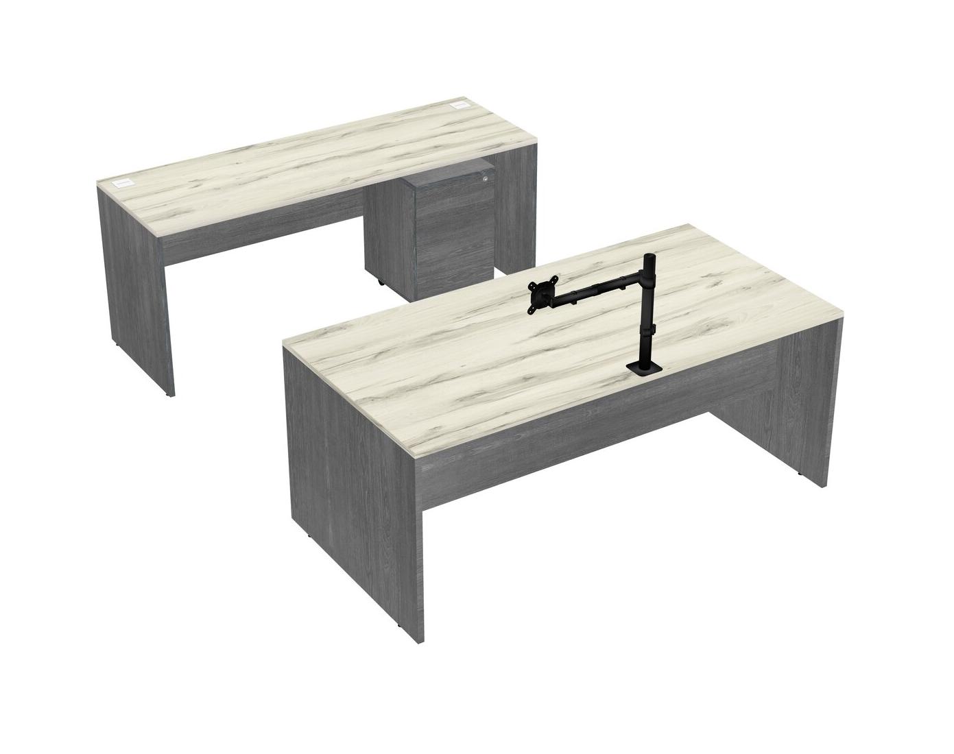 Office Parallel Desk Credenza Desk + Wooden Mobile Drawers + Monitor Arm (single Arm)