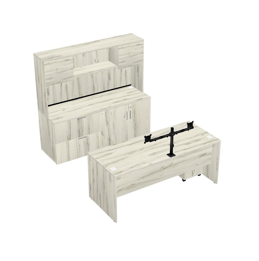 Heinne Holz Office Parallel Desk With Lateral Storage Combo + Wooden Mobile Drawers + Hutch + Monitor Arm (double Arms)