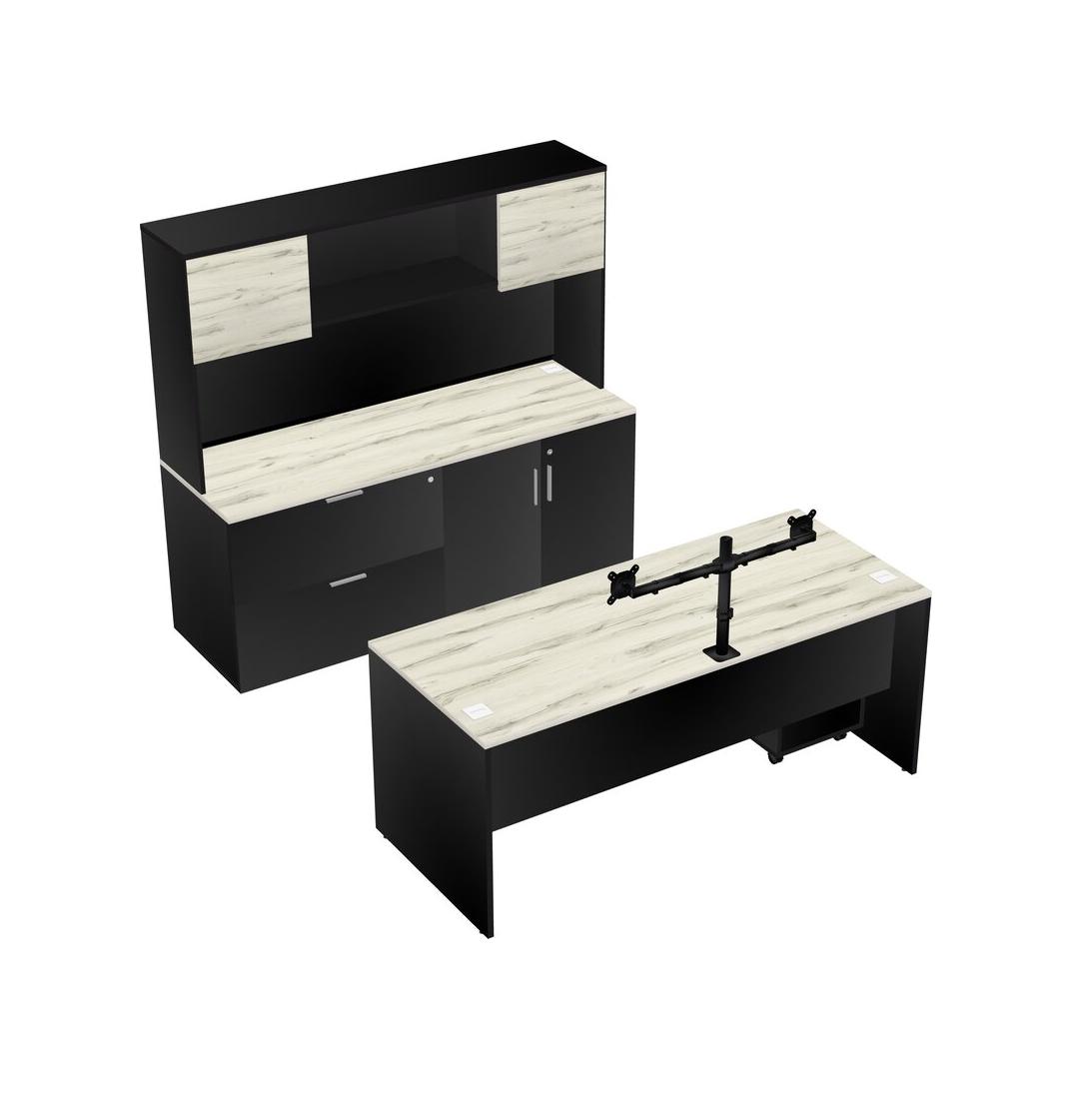 Heinne Holz Office Parallel Desk With Lateral Storage Combo + Wooden Mobile Drawers + Hutch + Monitor Arm (double Arms)