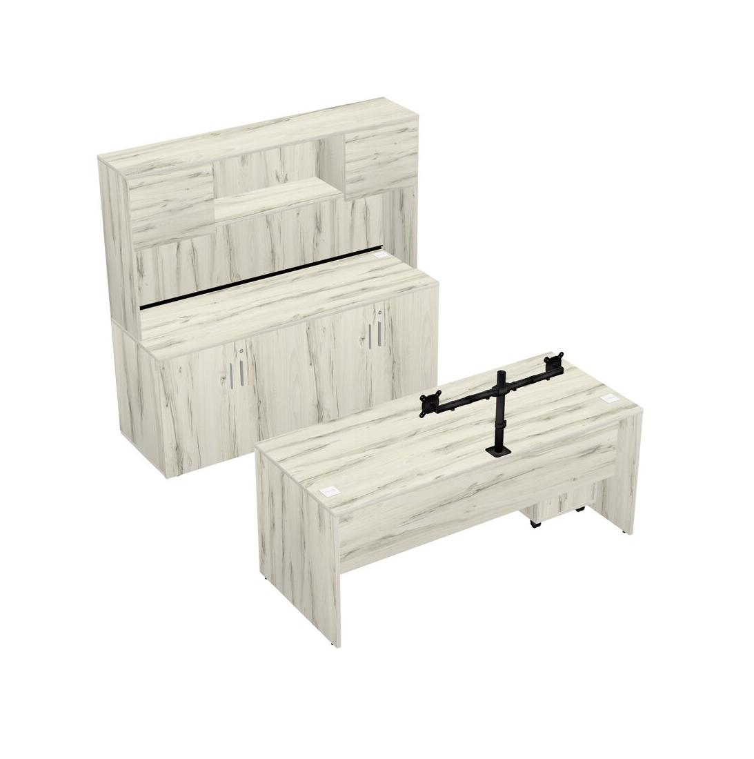 Heinne Holz Office Parallel Desk With Storage Cabinet + Wooden Mobile Drawers + Hutch + Monitor Arm (double Arms)