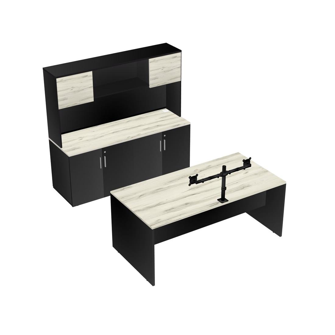 Heinne Holz Office Parallel Desk With Storage Cabinet + Hutch + Monitor Arm (double Arms)