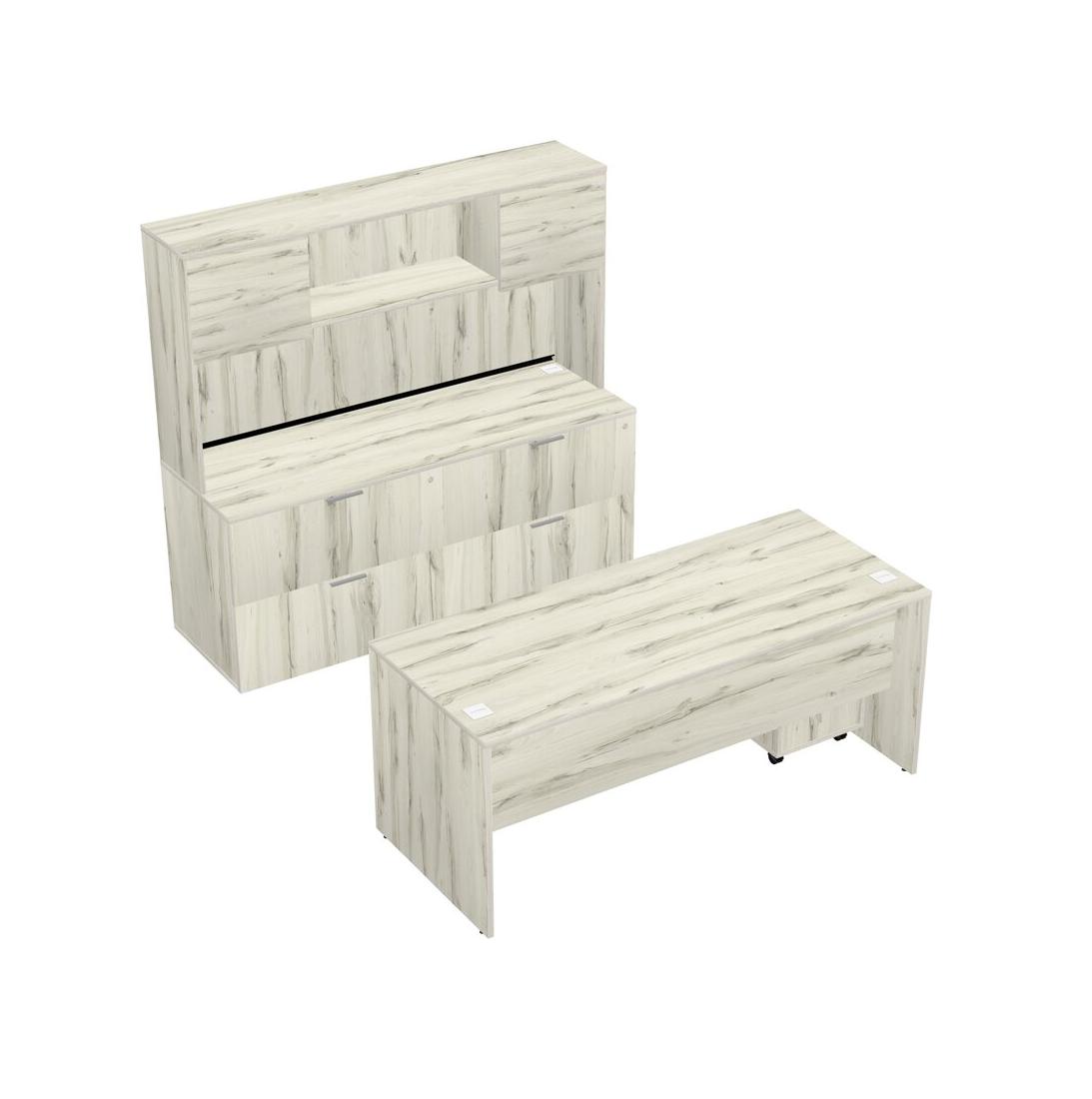 Heinne Holz Office Parallel Desk With Lateral File Cabinet + Wooden Mobile Drawers + Hutch