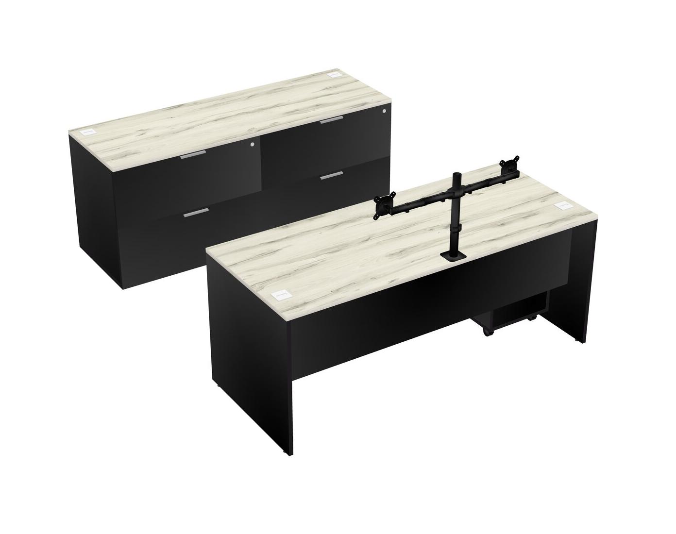 Heinne Holz Office Parallel Desk With Lateral File Cabinet + Wooden Mobile Drawers + Monitor Arm (double Arms)
