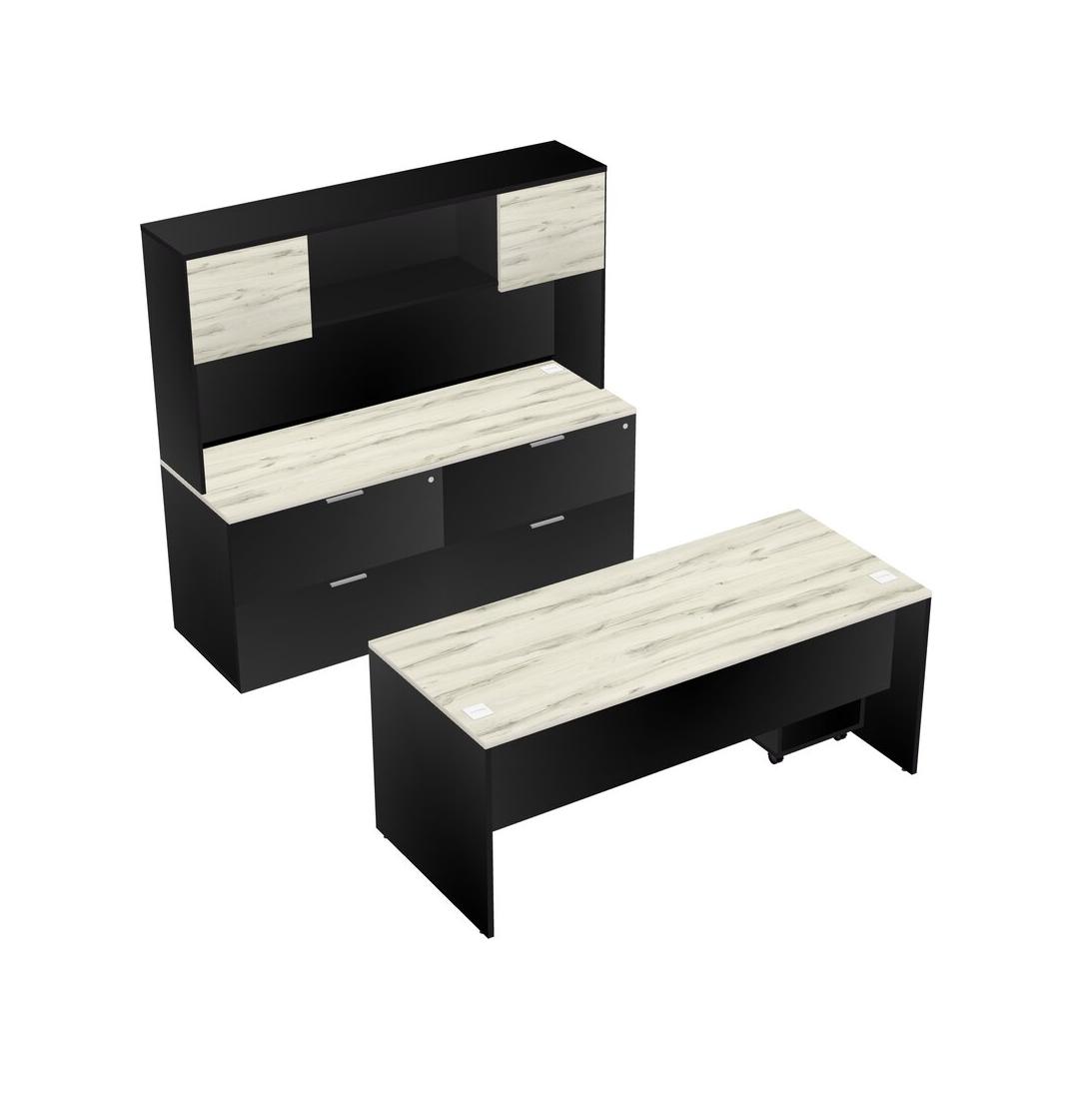 Heinne Holz Office Parallel Desk With Lateral File Cabinet + Wooden Mobile Drawers + Hutch