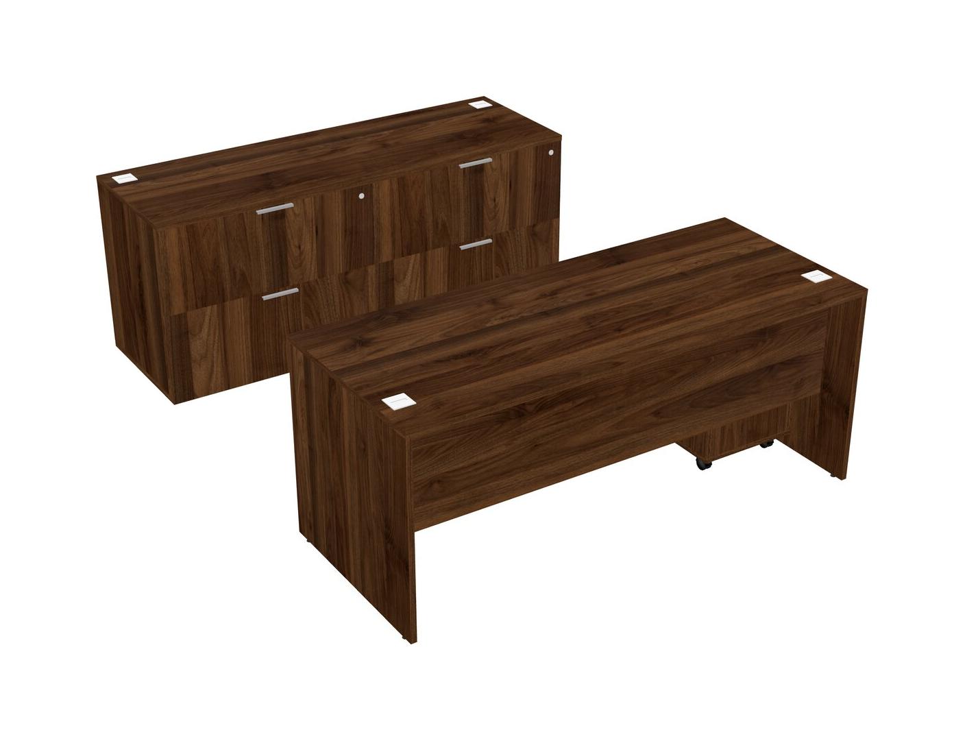 Columbia Walnut Office Parallel Desk With Lateral File Cabinet + Wooden Mobile Drawers