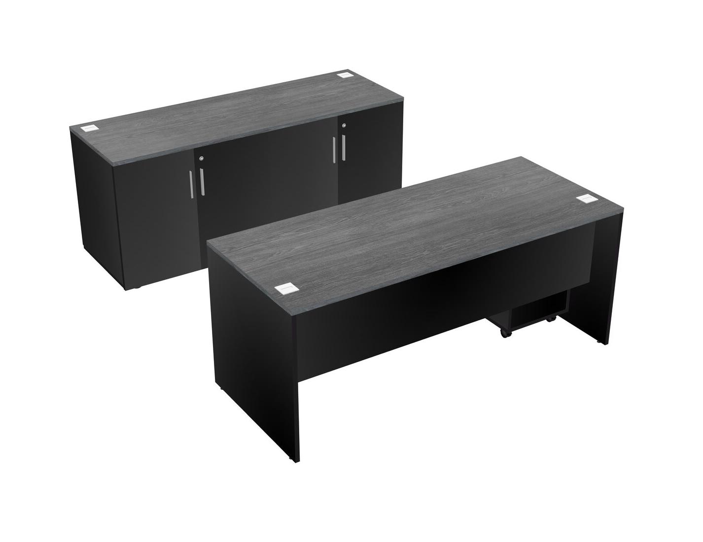 Grey Office Parallel Desk With Storage Cabinet + Wooden Mobile Drawers