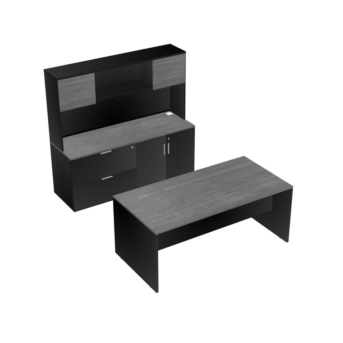 Grey Office Parallel Desk With Lateral Storage Combo + Hutch