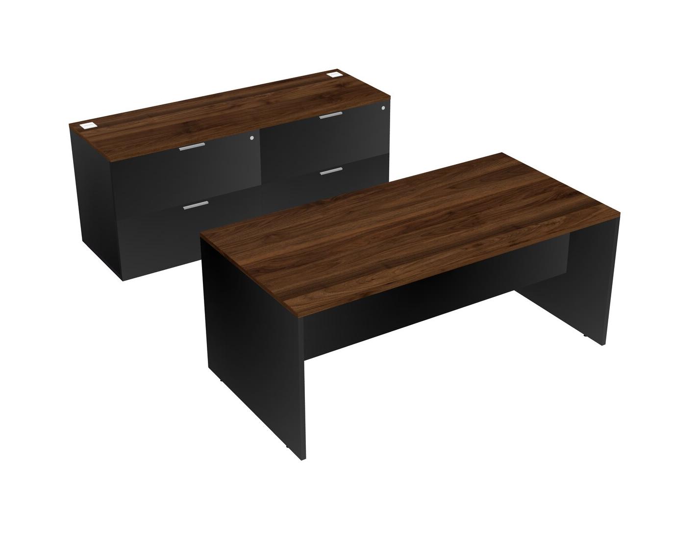 Columbia Walnut Office Parallel Desk With Lateral File Cabinet