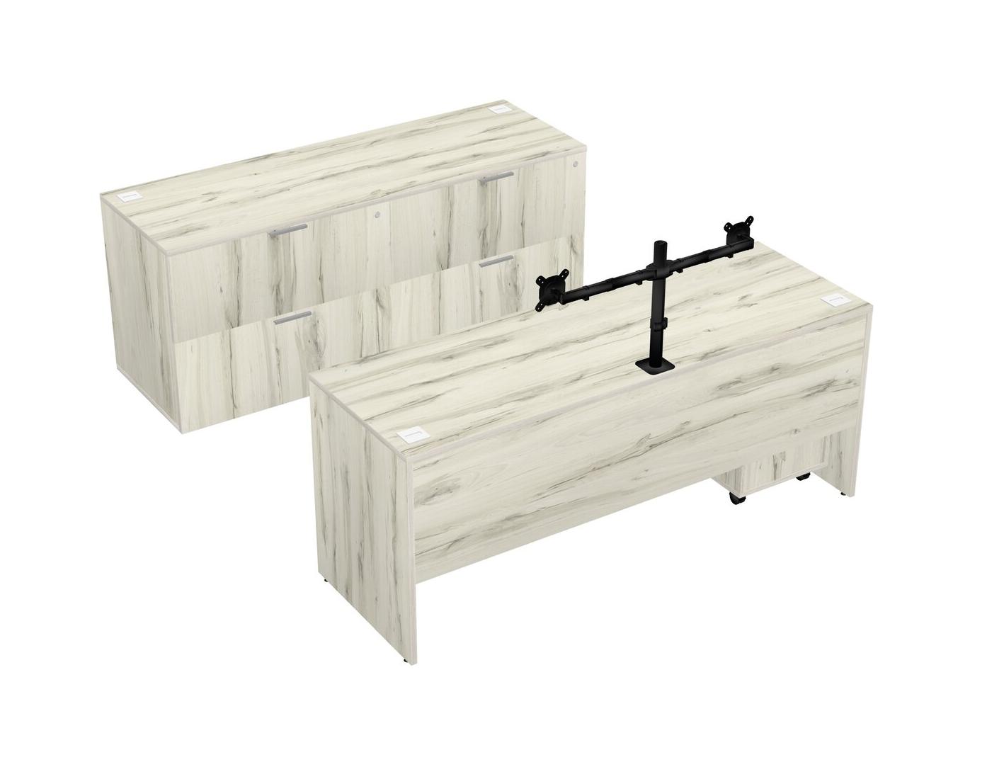 Heinne Holz Office Parallel Desk With Lateral File Cabinet + Wooden Mobile Drawers + Monitor Arm (double Arms)