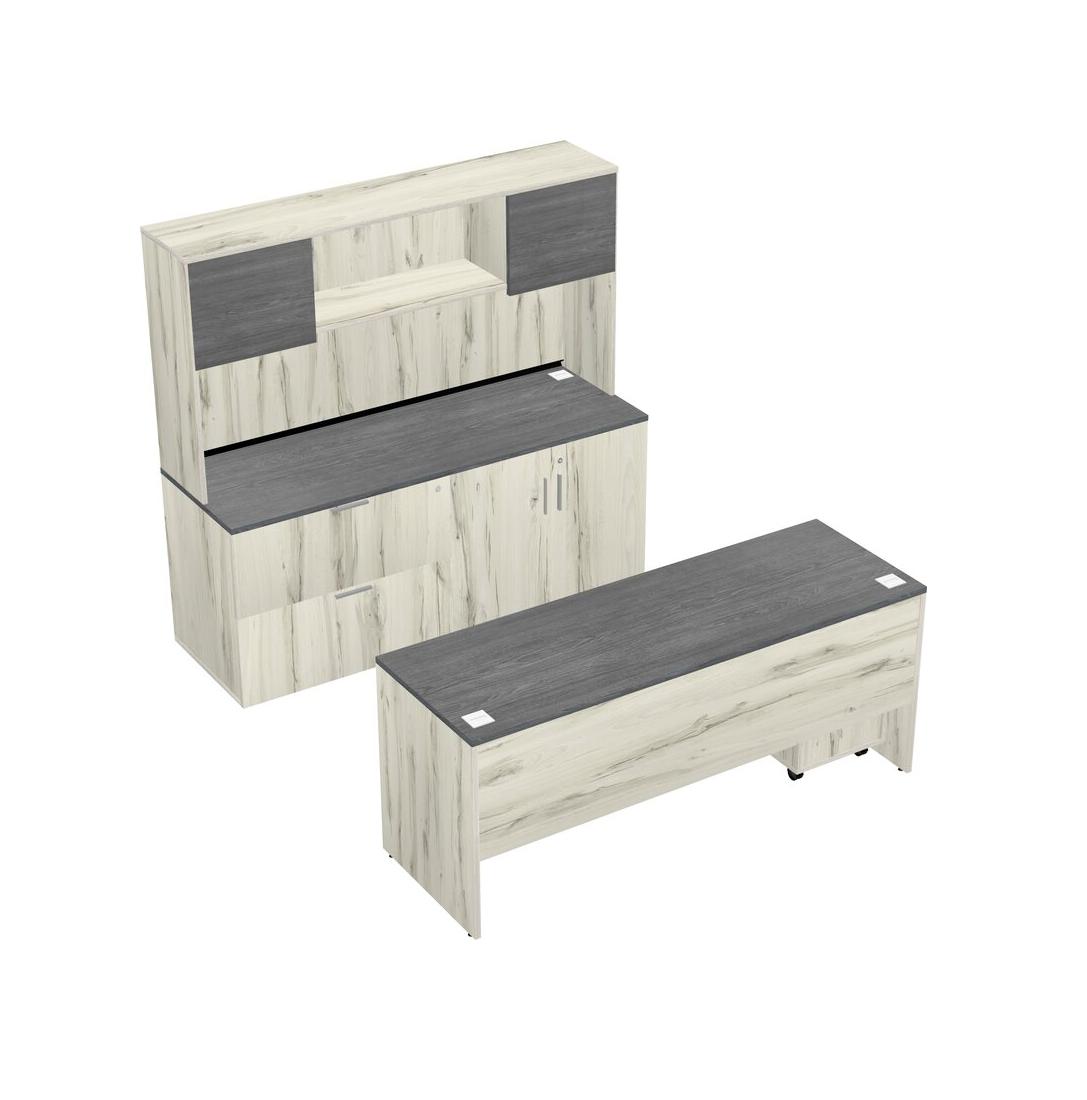 Grey Office Parallel Desk With Lateral Storage Combo + Wooden Mobile Drawers + Hutch