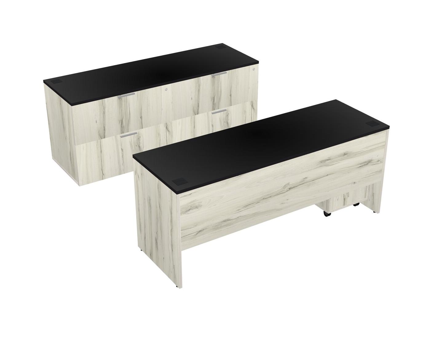 Black Office Parallel Desk With Lateral File Cabinet + Wooden Mobile Drawers
